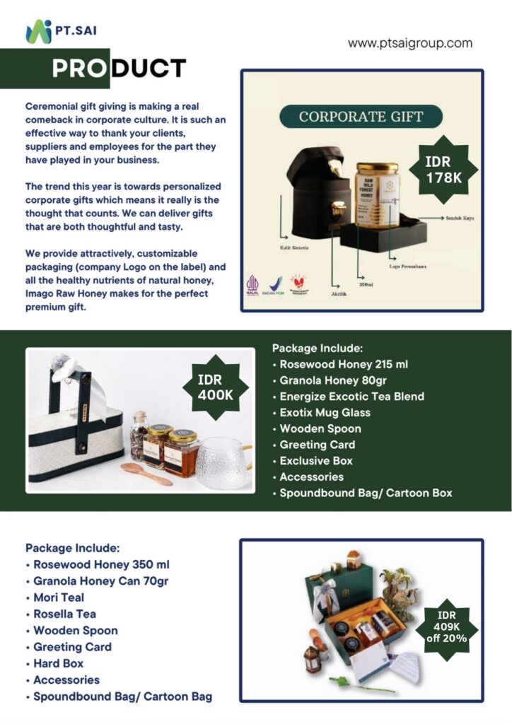 PT SAI presents the needs of special hampers and gifts for business partners, employees and cutomers, in various packages according to the theme that your company wants to convey.